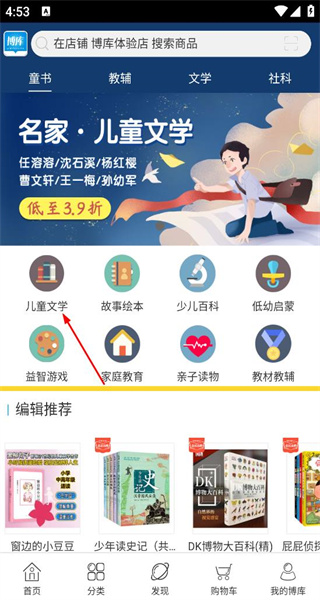 打开软件进入首页后,能看到搜索栏、自营省钱、新人专区等板块,点击“我的博库”即可进入账号登录界面。