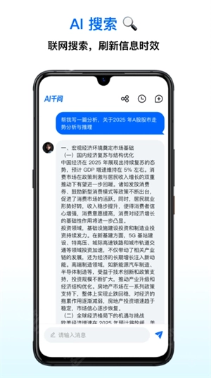 千问(ai智能助手)最新版是一款智能问答助手,这款应用是最新版本。应用中把自然语言处理技术与多源知识库结合起来,让应用能够更加准确的回答用户的问题,并且应用回答的问题都非常的准确,用户不用担心应用答案的准确率,同时应用还是24小时实时在线形式,能够随时随地的进行回答,大大为用户节约了时间。应用的界面简单,简洁明了,用户能够一目了然,极大的方便了用户的使用。