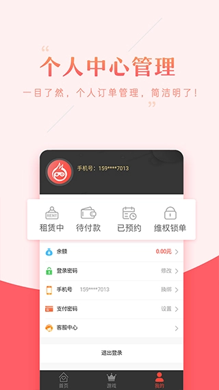 4、推出账号出租功能,用户可上传个人账号来获取收益