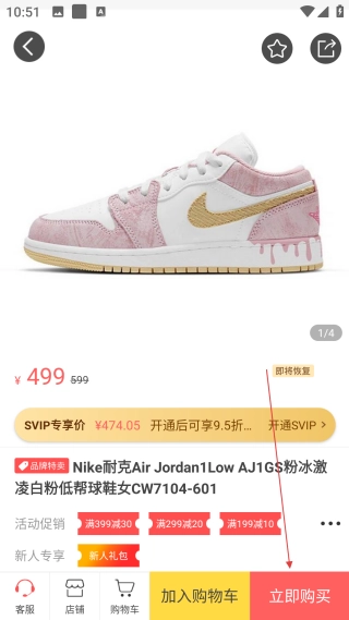 4、在商品详情页,点击【立即购买】按钮,即可完成该商品的下单结算流程。