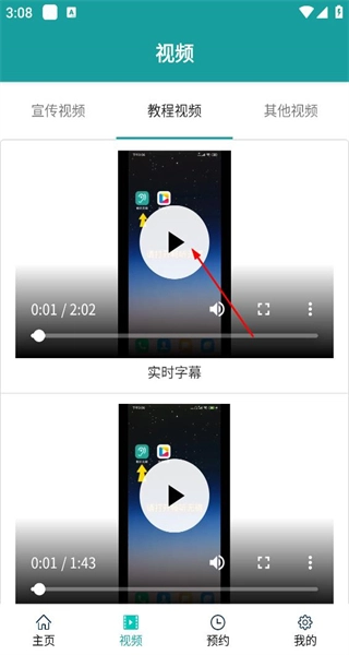 3、切换到教程视频标签页,找到实时字幕相关的视频,点击该视频的播放按钮,即可观看对应的教程视频内容。