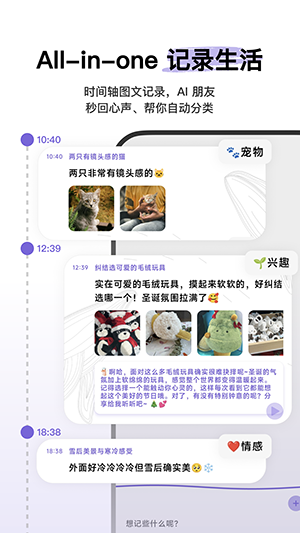 生活日志的记录内容能自动形成时间脉络,让你回顾过往的美好时光时更有条理、一目了然。