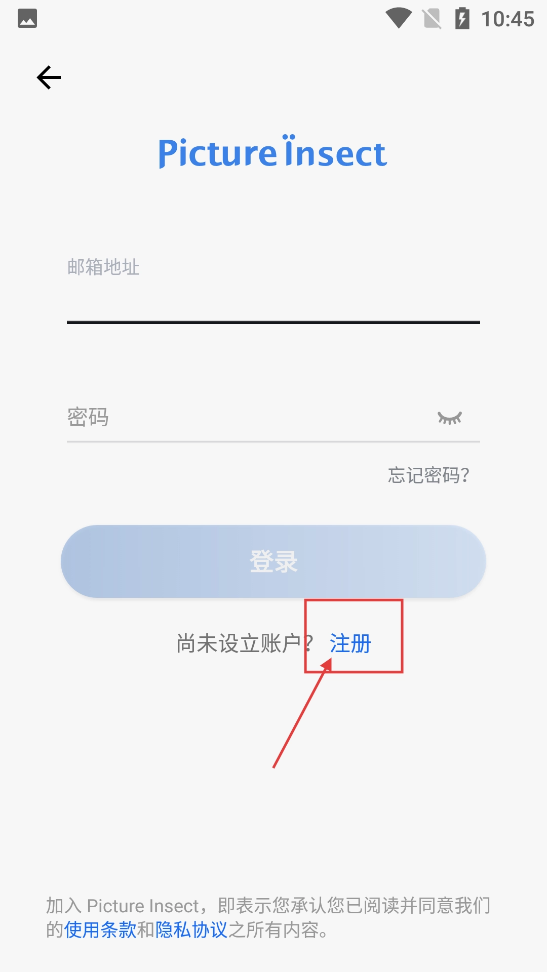 1、在Picture Insect的启动页面,您能够选择【使用Google账号】来登录,要是已经拥有账号,也可以点击【登入】按钮完成登录操作。