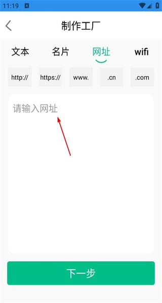 3、打开网址界面,挑选适宜的网址前缀,填写对应的网址内容后点击下一步。