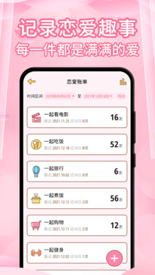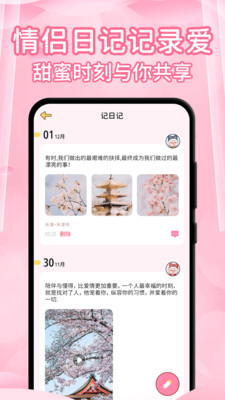 1、是一款帮助情侣记录各种甜蜜日常和事情的软件。