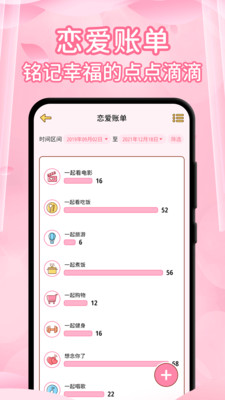 1、情侣们可以在这里制作独属于彼此的恋爱账单,把幸福的点滴都记录下来。