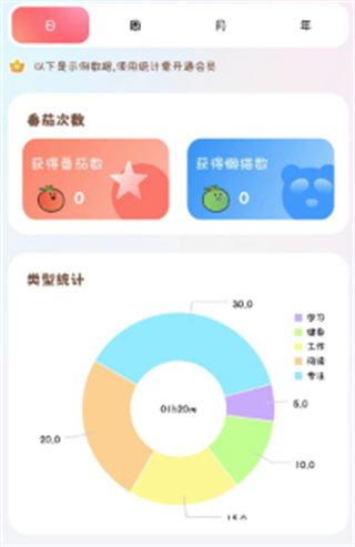 该功能可追踪你投入专注状态的时长,涵盖每次番茄钟的使用时段。借助这些数据统计,你能直观了解自身专注力的变化趋势,进而更精准地优化学习或工作策略。