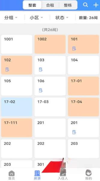 4、点击“房源”栏目,即可查看各个房间的详细信息,涵盖房号、状态以及配套设施等内容。