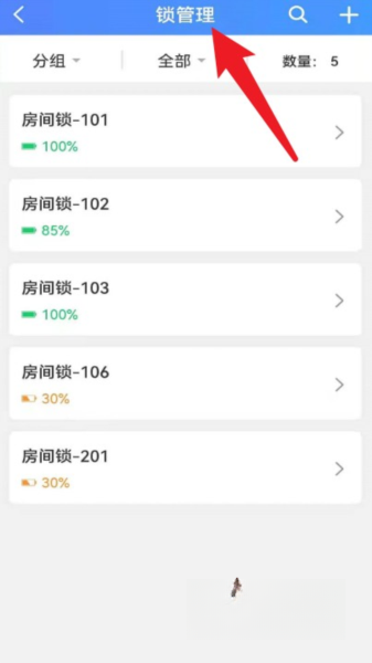 5、点击“锁管理”,可查看各房间门锁的电量与使用情况,还能通过分组筛选功能进行管理。