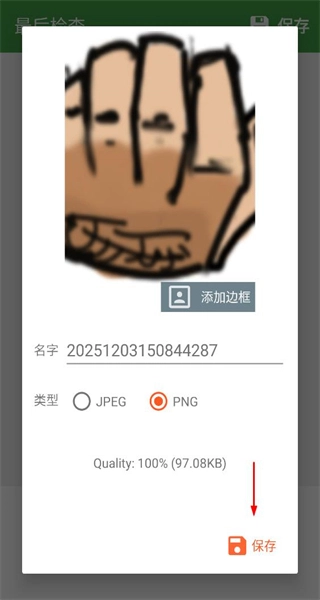 4、进入最终设置界面,填写名称并选择文件格式,核对信息无误后点击保存按钮,即可完成证件照的制作。