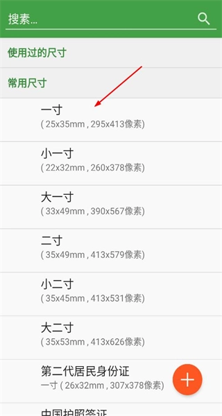 1、启动软件后,进入尺寸选择界面,在常用尺寸中挑选一寸规格,随后进入图片裁剪的操作流程。