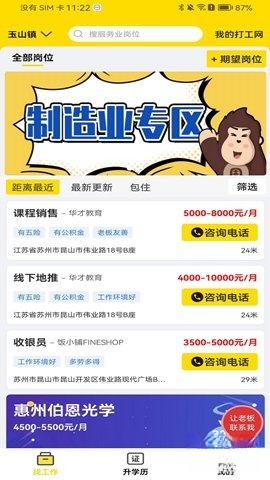 不管是汽车生产、电子设备装配,还是食品制作、纺织服饰等领域,找工作的人都可以在平台里寻得对应的岗位。