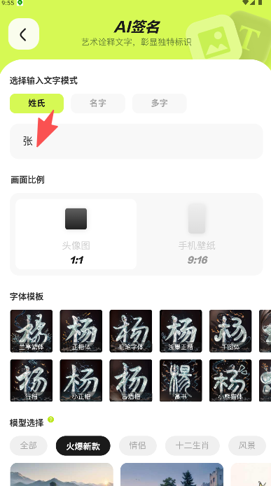 1提供签名设计所需的文字输入功能,允许用户录入一个或多个汉字,以此作为后续签名设计的核心文字素材。