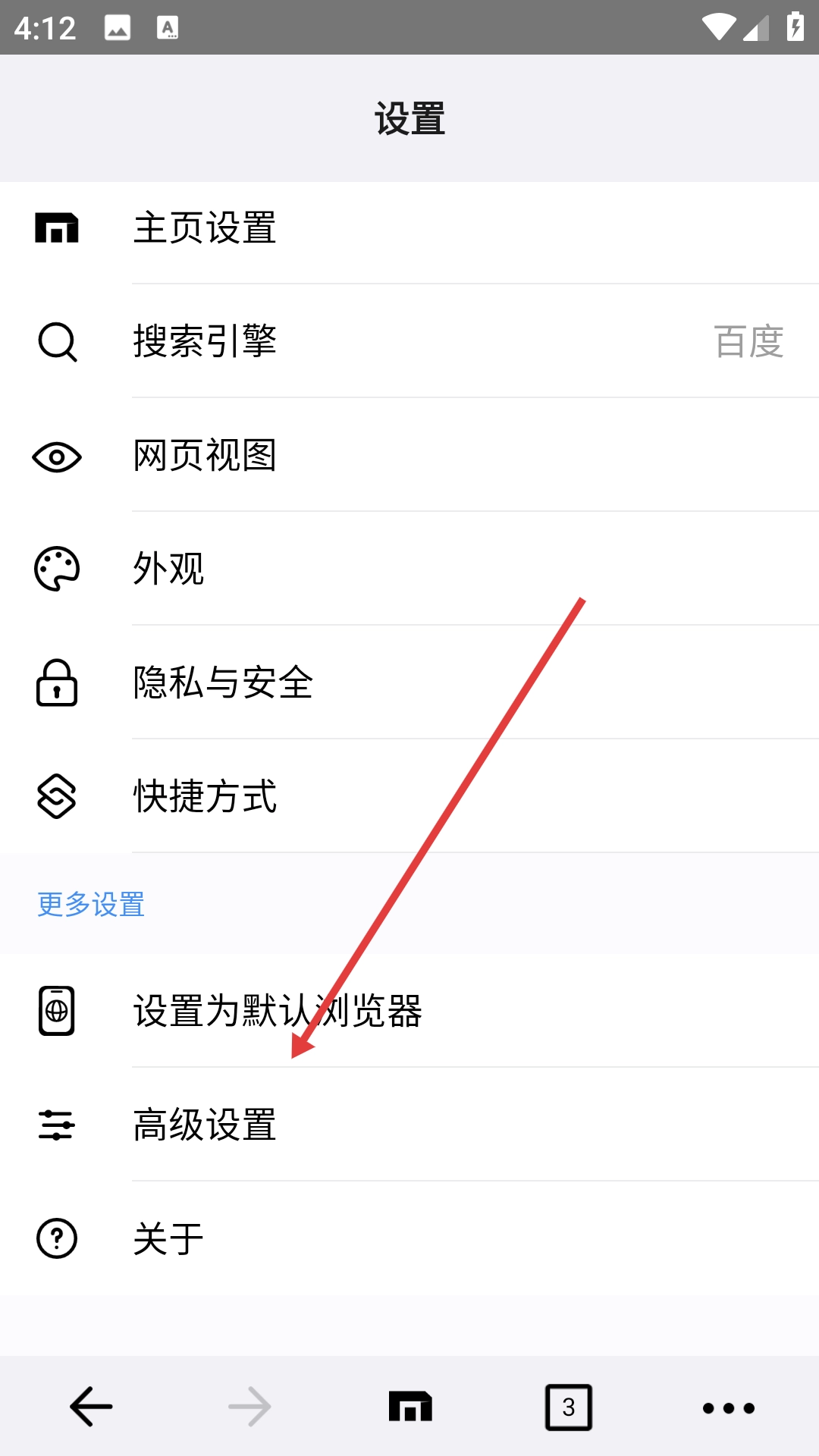 2、进入设置页面后,点击【高级设置】选项,即可进入高级设置页面。
