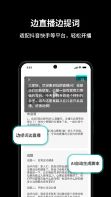 2、直播提词助力从容表达:具备直播与提词同步进行的功能,用户能预先设定提词文案,直播过程中实时查阅,有效化解忘词的窘境,帮助用户展现更从容自信的状态。