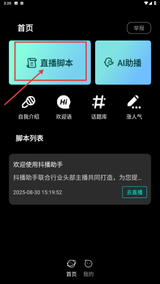 1启动对应的辅助应用后,在功能列表里找到与直播策划相关的选项并点击,随后系统会跳转至可编辑的内容生成界面。
