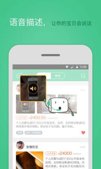 聊天、定位、语音描述宝贝详情等功能系统,打造了丰富的社交功能与二手交易趣味。