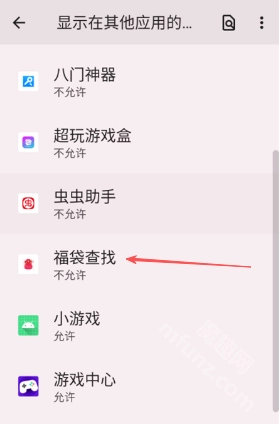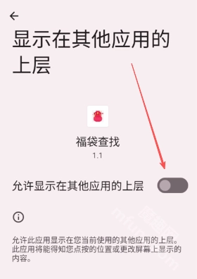 5、打开显示在其他应用上层的权限按钮。
