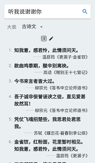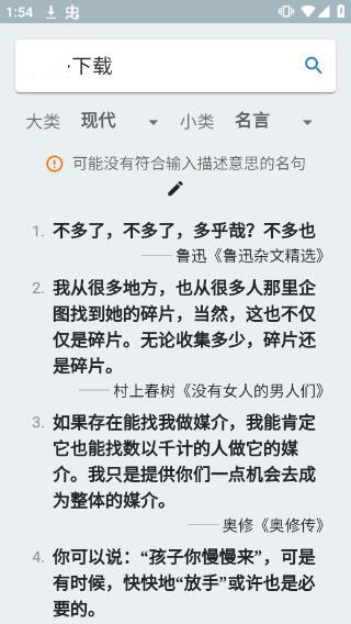 据意查句是一款省心好用的写作辅助工具,只需输入你想表达的意思,它就能依据需求自动查找古今中外的相关诗词名言,助力你快速完成引经据典。你还能按照现代、古代、名言等类别进行筛选查看,软件会清晰呈现句子内容、出处及作者等详细信息,让你的使用过程更加轻松便捷!
