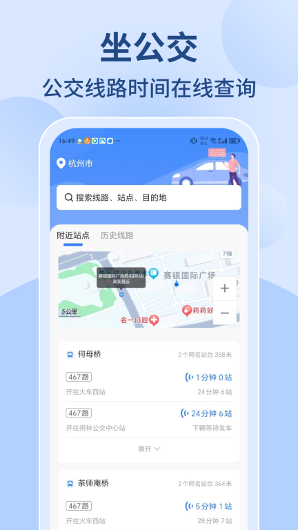 有一款专门用于查询公交信息的应用程序,它是出行时查询公交的得力助手,使用起来十分便捷。无论你身处本地城市还是其他城市,都能借助它获取所需的公交信息。无论何时何地,你都可以通过它在线查询公交动态,它还能为你提供实时且精准的导航服务,让你的出行更加顺畅,无需担忧。赶紧来体验吧!