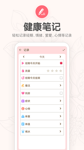 这款软件配备了便捷的提醒功能,用户能自行设置提醒事项,以便关注自己的经期、易孕期和黄体期。借助这些提醒,用户可以更高效地管理月经周期与生育规划,让经期记录、避孕安排以及备孕准备都变得更为简单。 在功能实用之外,该软件是专门针对女性需求打造的,界面设计直观易懂,风格也十分可爱。用户通过简单明了的操作就能轻松上手,而软件的可爱设计还能提升使用时的愉悦体验。可以说,这款软件不仅功能全面,其外观设计也颇具吸引力。