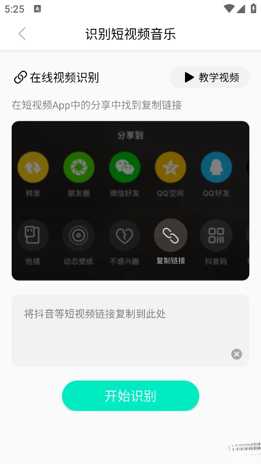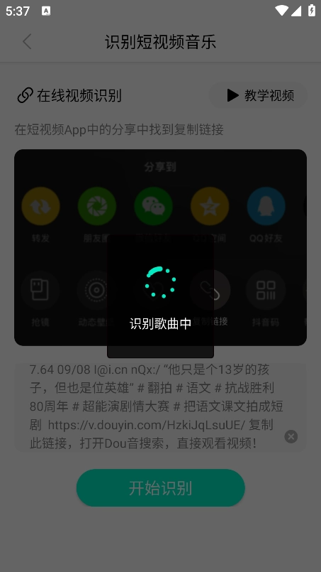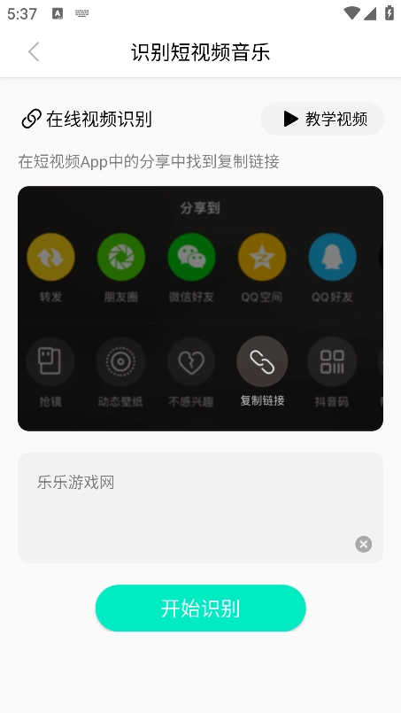4、链接识别:用户在识别短视频音乐时,可将短视频链接复制至Q音探歌,软件会自动解析该链接并识别其中的背景音乐,这一功能适用于无法直接播放音频的场景。
