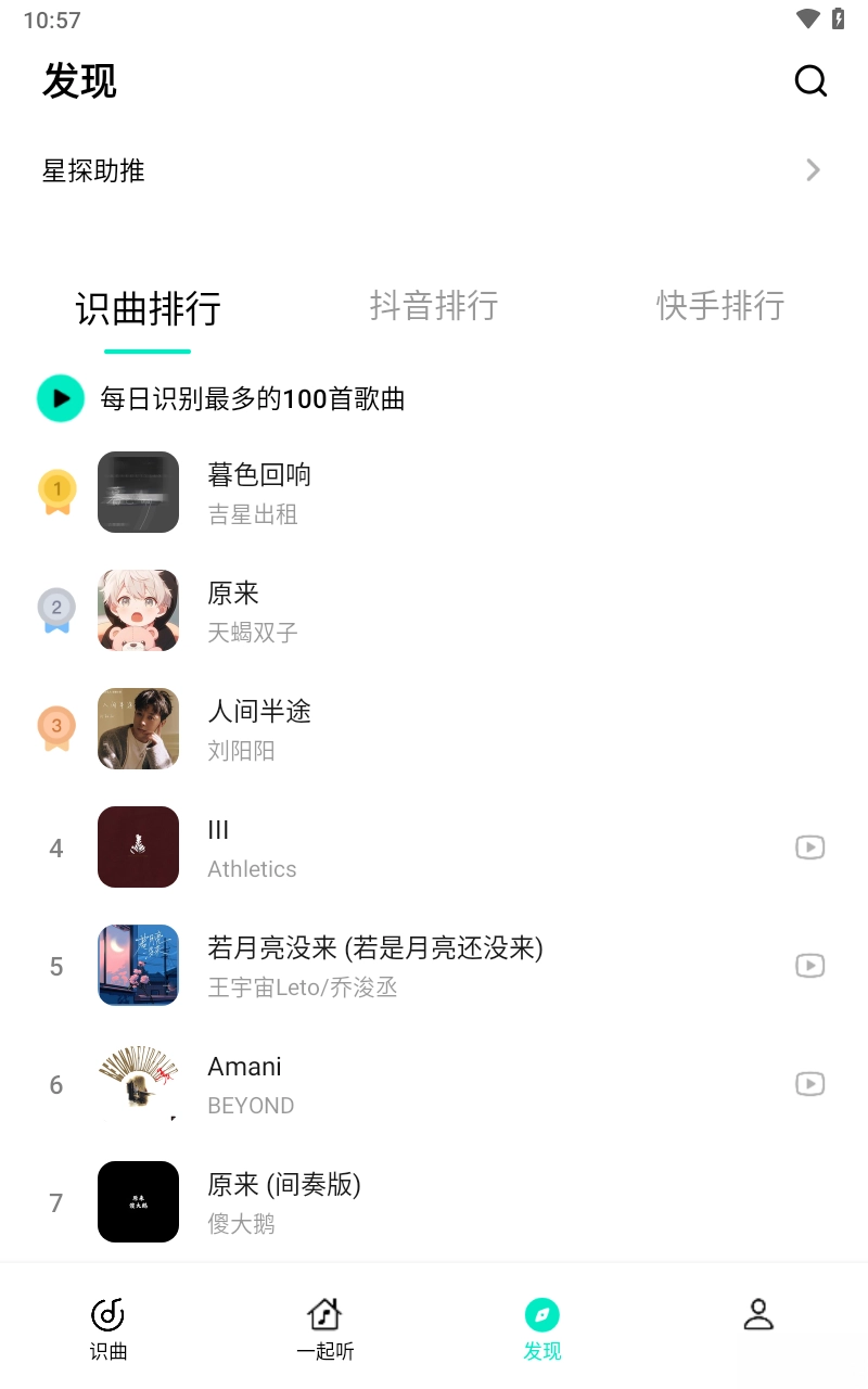 5、手动触发识别:在Q音探歌的主界面上,用户能够通过点击屏幕中间的音符图标或者“开始识别”按钮,主动启动识别功能,这种方式适合那些需要精确把控识别时机的使用场景。