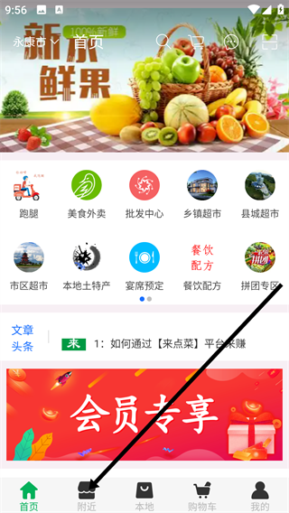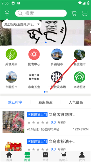 2、在附近页面点击【县城超市】分类图标,即可进入县城超市列表页面。