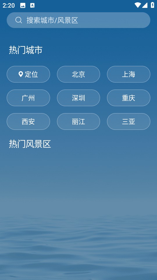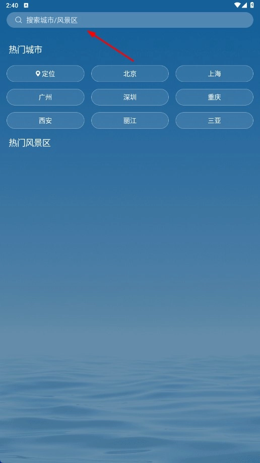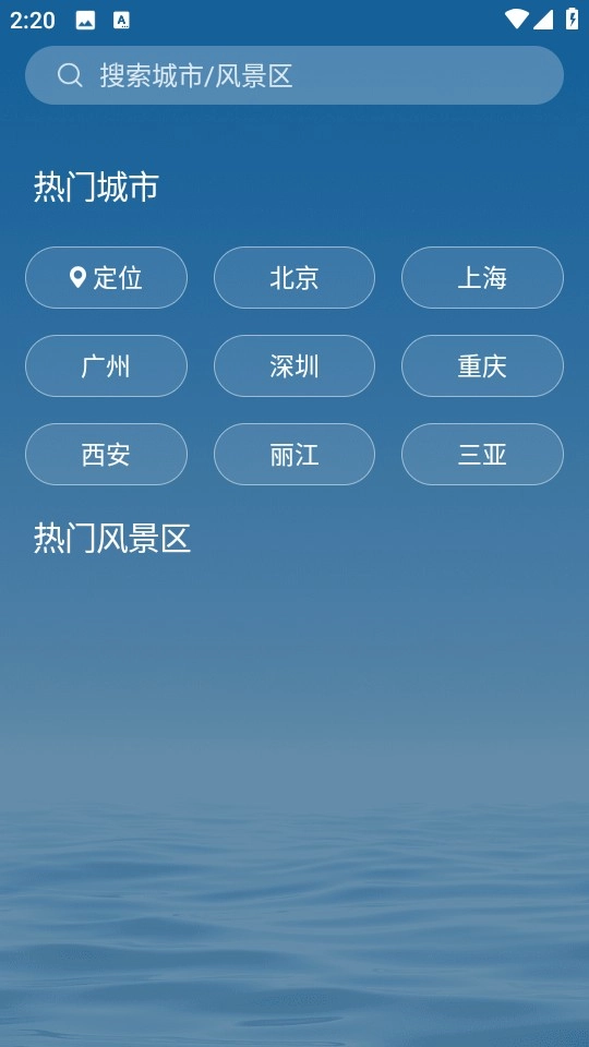 2、在主页面顶部的搜索框中,输入城市或风景区的名称,即可查询到对应的天气信息。