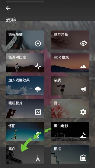 2、选择你钟爱的黑白风格预设,确定后点击右下角的对勾来完成应用操作。