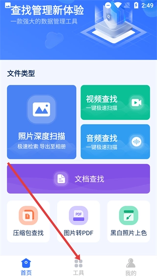 1、在首页点击底部【工具】,进入工具页面,可浏览各类热门工具选项。