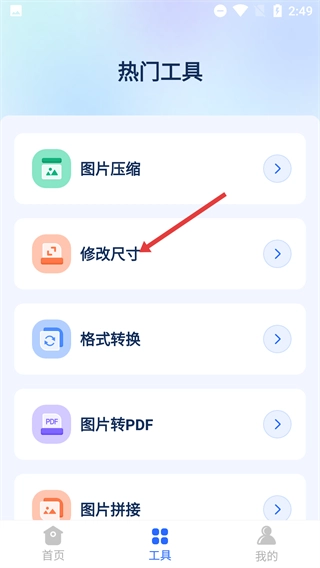 2、在热门工具中点击【修改尺寸】,进入尺寸修改页面。