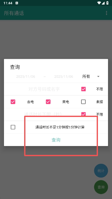 3、等待查询好以后就会自动统计您的通话记录了
