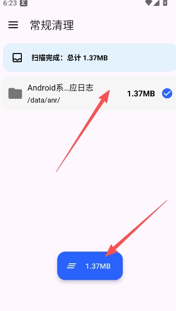 3、和常规清理一样,点击下方图标开始。