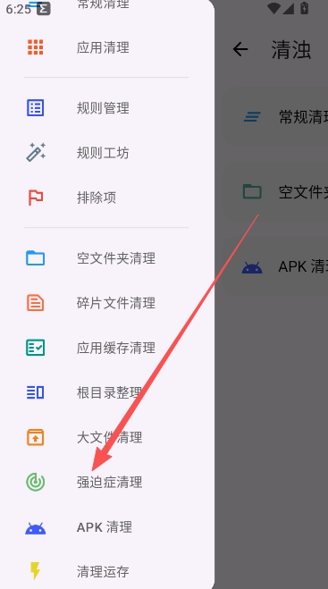 2、下滑列表找到该页面内的强迫症清理。