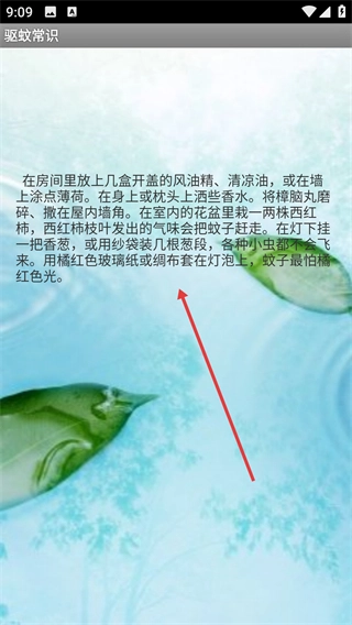 3、在驱蚊常识页面,可了解如放置风油精、栽种西红柿等物理驱蚊技巧,辅助提升驱蚊效果。