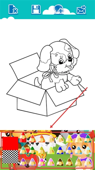 3、在涂画界面选择颜色铅笔,对涂画进行上色。