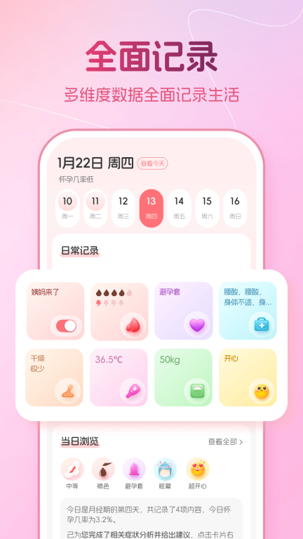 2它具备双重记录功能,既能追踪生理期的周期时长,也能详实记录期间出现的各类身体反应,通过整合这些信息,用户可以对自身的生理状况形成全方位的认知。