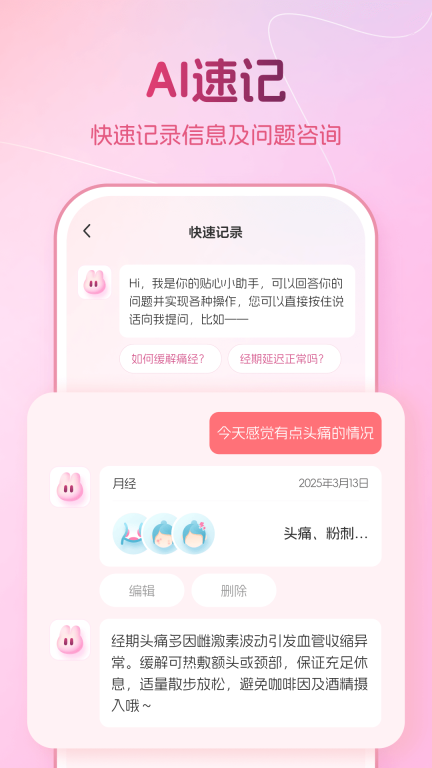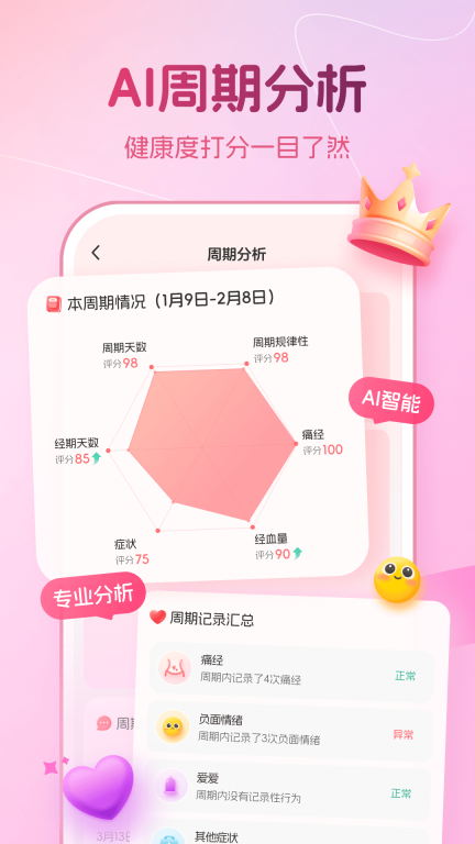 2. 智能分析功能,能够对用户的经期数据展开实时分析