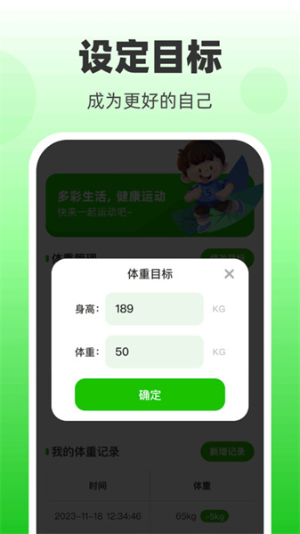 2、设置体重打卡与走路目标,仅需一键操作,在畅享运动乐趣的同时,便能轻松完成目标;