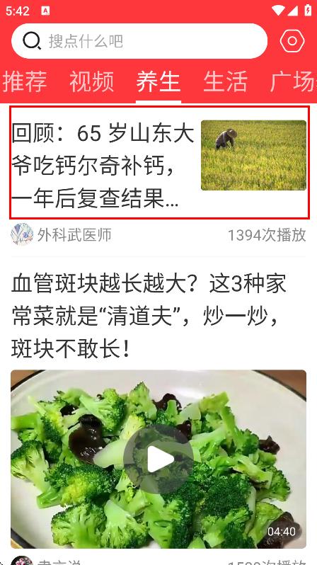 3、在养生类内容页面,挑选自己感兴趣的内容,点击进入其详情页面。