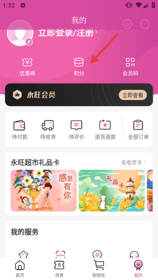 2进入个人中心页面后,找到并点击积分相关入口,系统会自动引导你完成登录或注册操作。