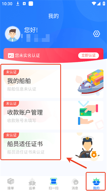 3. 完成个人信息认证后,在【我的】页面进行各项证书及技能认证,之后就能开始接单了。
