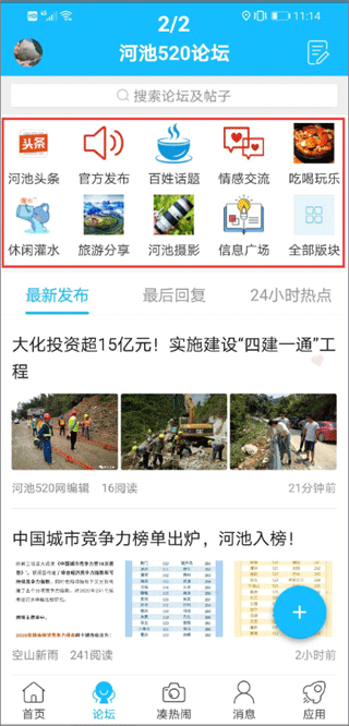 广西河池论坛手机版是专为河池地区用户打造的生活类论坛,设有河池新闻头条、百姓家常、旅游分享、信息广场等多个板块;平台持续为本地市民推送最新资讯,涵盖本地新闻、交通路况、政策法规、购物指南、旅游攻略等内容,每日更新丰富动态,用户可直接通过手机提问,快速获取解答,内容十分多元。此外,用户既能在论坛发帖分享对各类话题的见解、与其他网友互动交流,还能查询当地大量招聘信息,对求职者而言实用性极强,感兴趣的用户不妨前来体验。