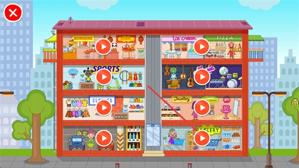 1、点击【GROCERY】区域的播放按钮,即可进入杂货店场景。