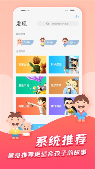 3围绕孩子感兴趣的话题打造了八个故事主题,涵盖童话、魔法、冒险、科学、英雄等丰富内容,一键就能获取孩子想要的各类故事,帮助发现孩子的兴趣所在。