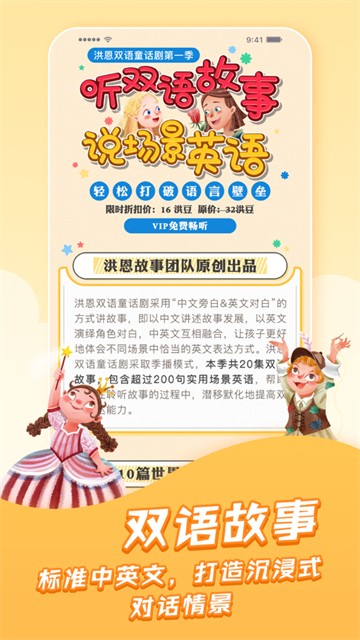 洪恩故事是一款专为孩子设计的知识启蒙有声故事软件,由知名儿童文学作家与专业儿童剧主播精心打造,通过多角色生动演绎的高品质故事音频课程,将有趣的故事与实用的知识融入其中,陪伴亿万孩子度过精彩的童年时光。