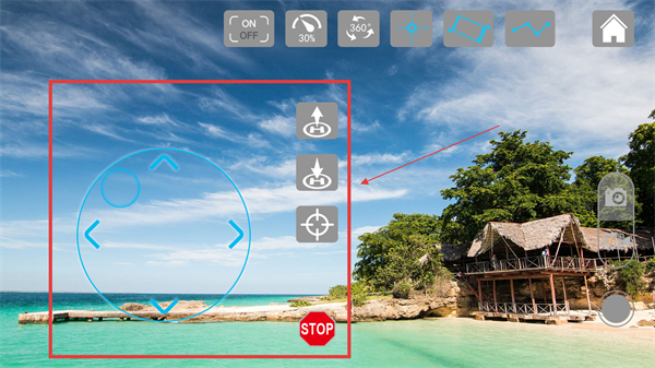 3、界面会显示方向控制圆盘以及【上升】【下降】【瞄准】等功能按钮,可借助方向圆盘来控制视图方向的下降操作,点击【STOP】按钮即可终止当前操作。