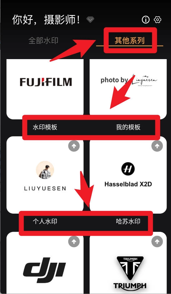 3、切换至其他系列可选择水印模板、个人水印或品牌水印,方便个性化编辑。