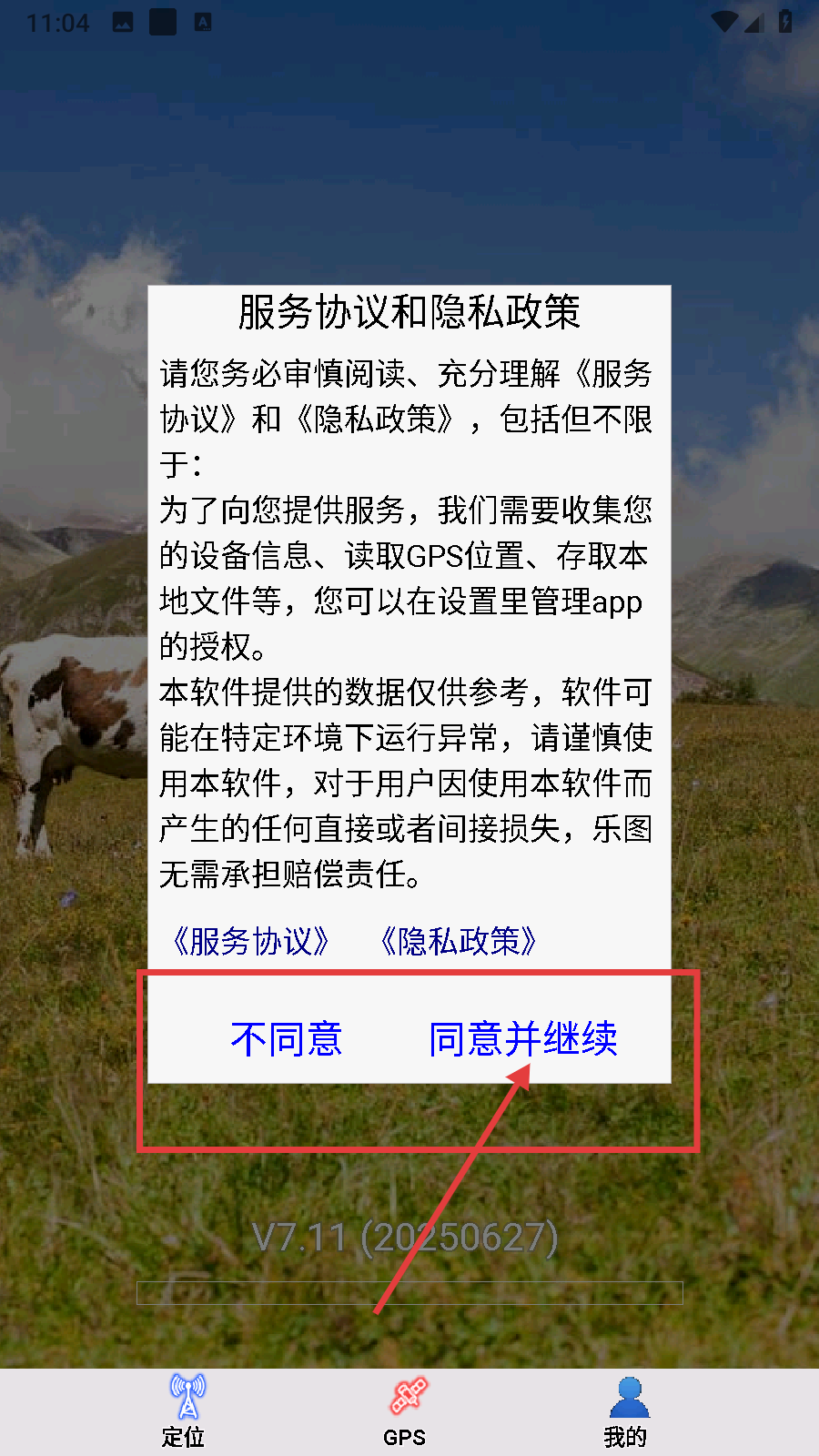 1、首次使用乐图,需审慎阅读《服务协议》和《隐私政策》,若同意则点击【同意并继续】进入应用。